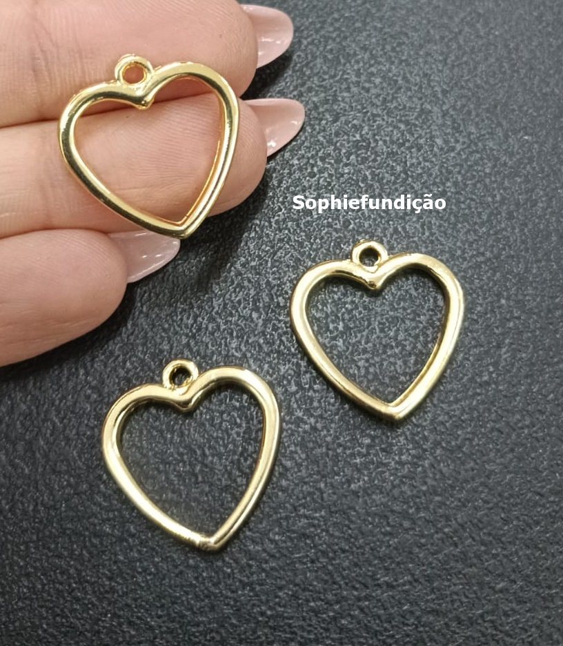 Pingente coração | Banho dourado cataforético | Peso 2g unid