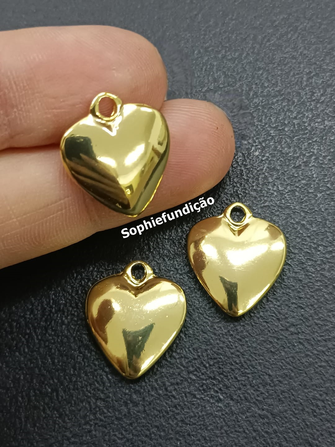 Pingente coração 3D | Banho dourado cataforético | Peso 3g a unidade