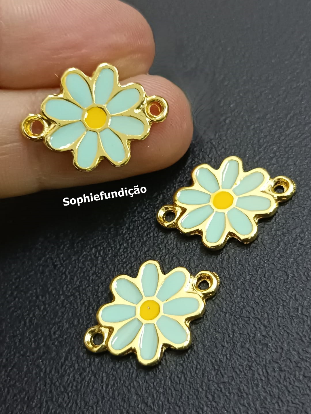 Entremeio margarida | Banho dourado cataforético | Resinado em verde água