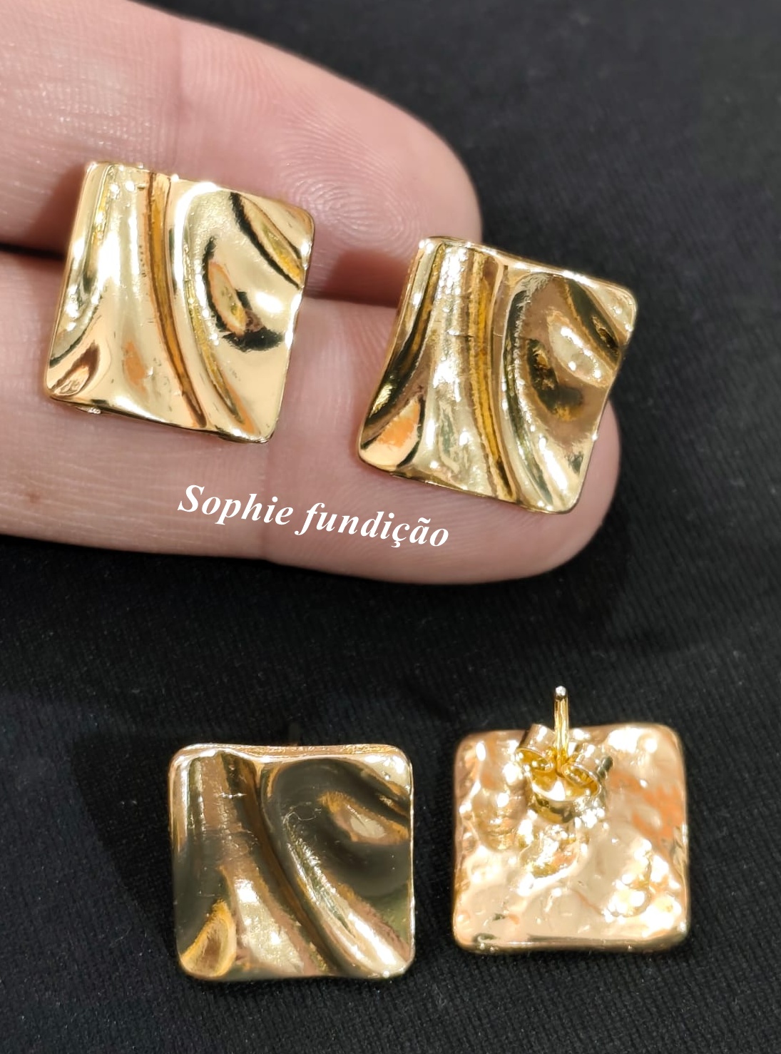 Início Brinco 6130 || Brinco quadrado amassado – dourado