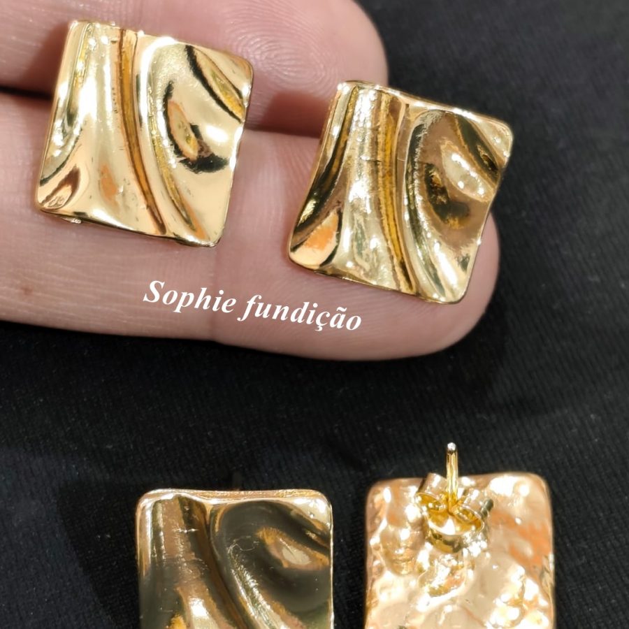 6130 || Brinco quadrado amassado – dourado